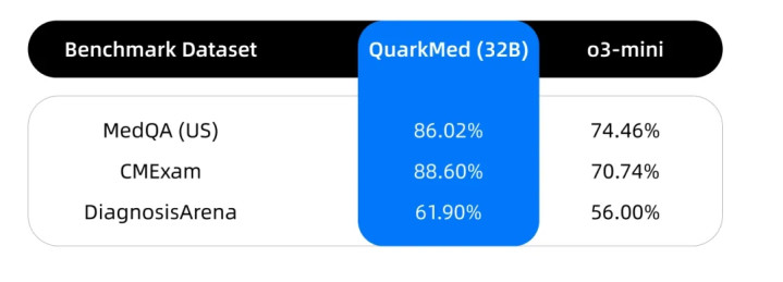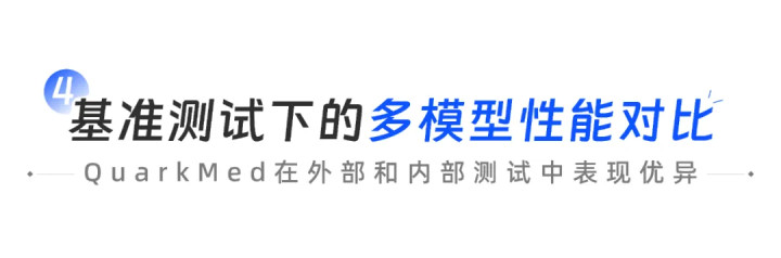 外部基准测试表现:与约 30B 参数类别中的其他领先开源模型相比,夸克健康大模型在各种医学问答和推理任务中表现出了更优异的性能。